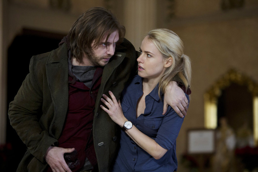 12 Monkeys stars Aaron Stanford as Cole, Amanda Schull as Dr. Cassandra Railly, Kirk Acevedo as Ramses, and Noah Bean as Aaron Marker.