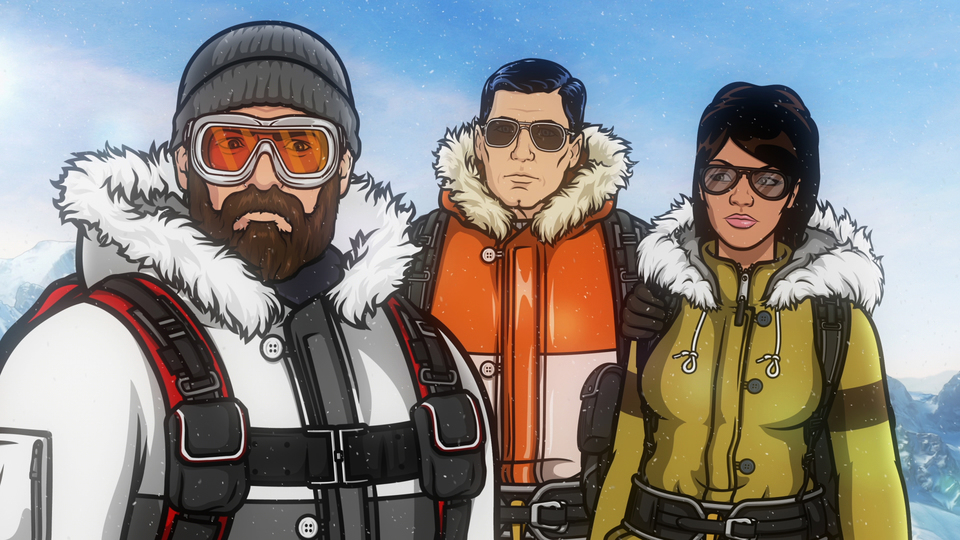 ARCHER: Episode 3, Season 6 "The Archer Sanction" (Airing Thursday, January 22, 10:00 PM e/p) Archer, Lana and Ray climb their way to the top of an assassin's hit list. Pictured: (L-R) Lana Kane (voice of Aisha Tyler), Sterling Archer (voice of H. Jon Benjamin), Ray Gillette (voice of Adam Reed). CR: FX