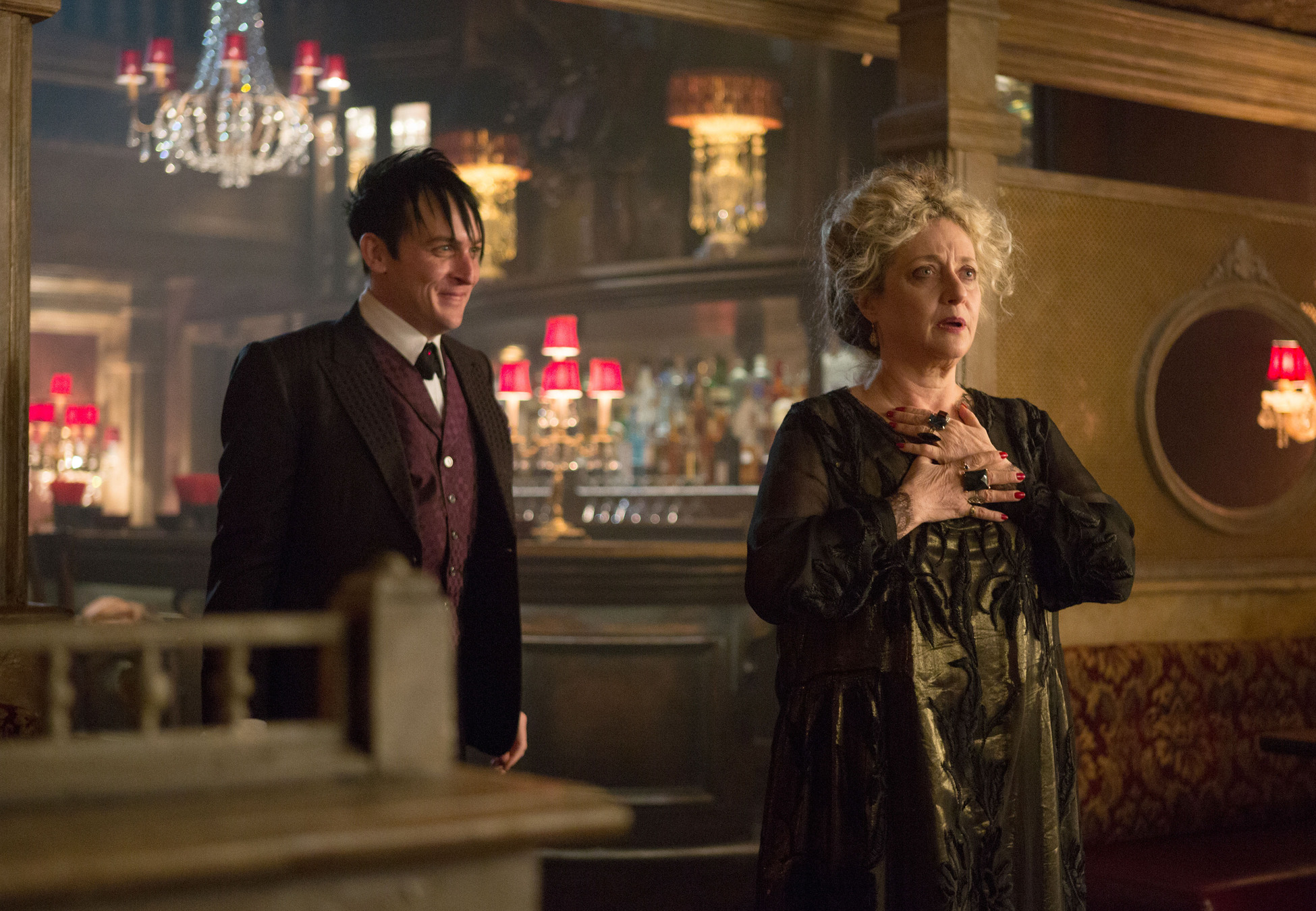 GOTHAM: Oswald Cobblepot (Robin Lord Taylor, L) surprises his mother, Gertrud (guest star Carol Kane, R), in the "Welcome Back, Jim Gordon" episode of GOTHAM airing Monday, Jan. 26 (8:00-9:00 PM ET/PT) on FOX. ©2015 Fox Broadcasting Co. Cr: Jessica Miglio/FOX