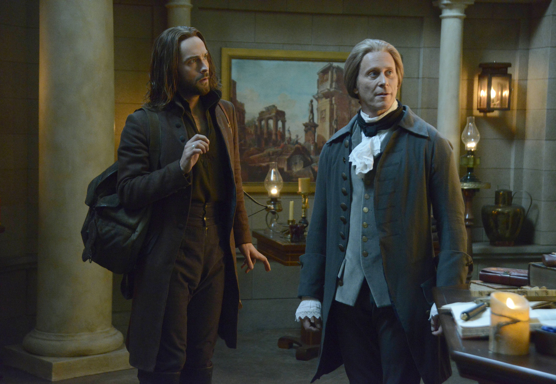 In these clips from “What Lies Beneath” we get flashbacks of Ichabod’s time with Jefferson; in the present, Ichabod and Abbie come across Jefferson’s spirit; and Team IchAbbie gets some help from a journalist as they face a group of reavers:
