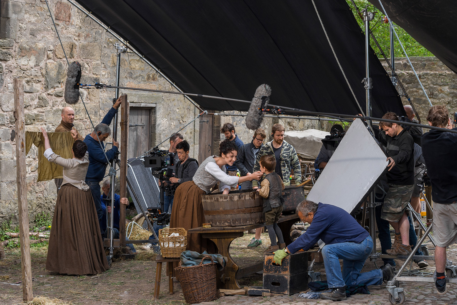The second set of images are behind-the-scenes photos that give a glimpse into filming the second half of Outlander‘s first season. Check them out!