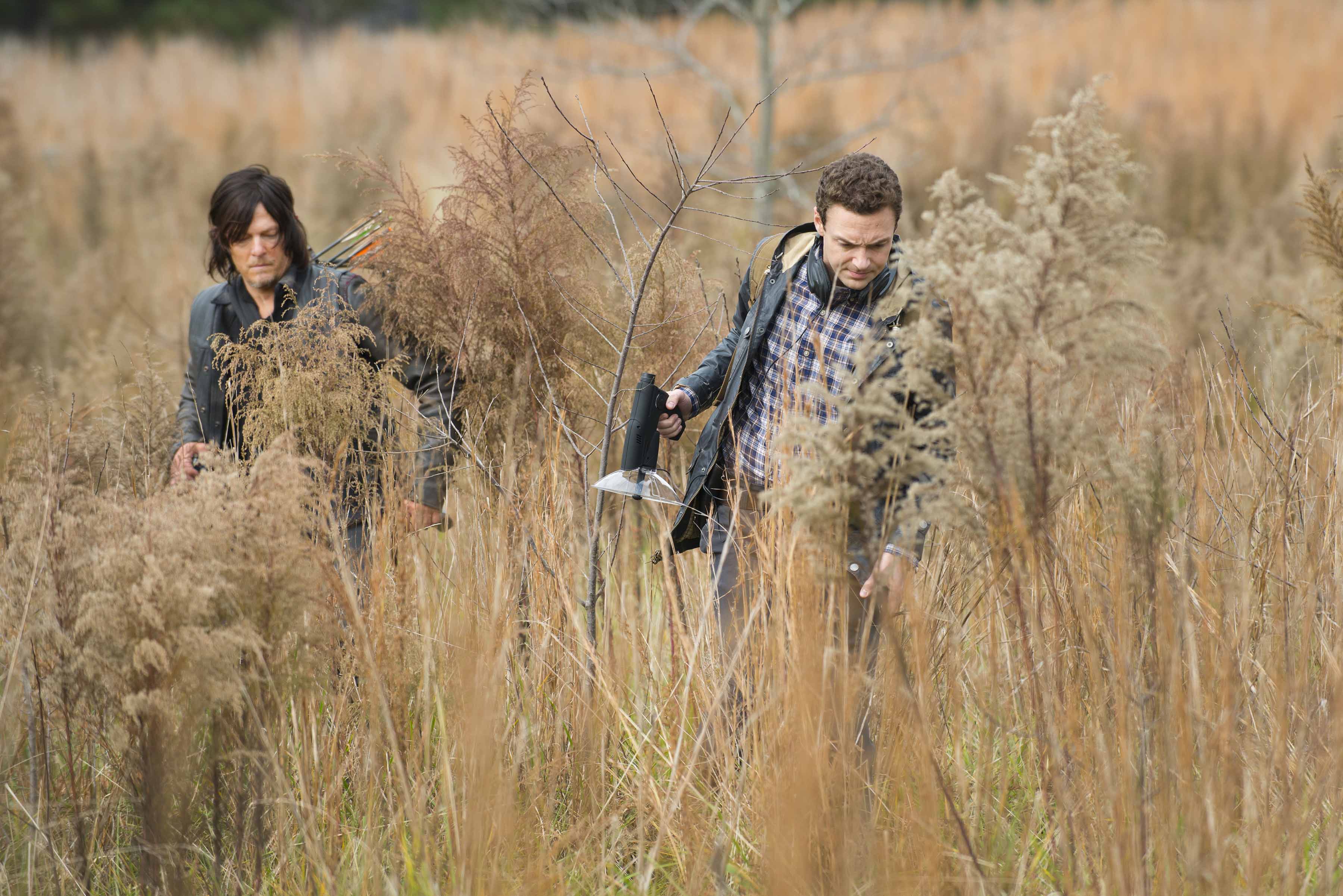 Maggie is right, Deanna let them in and making Rick leave will not work. Everyone has loss so much, it will be interesting to see what everyone has to say in the season 5 finale. But we aren’t done with the sneak peek just yet, take a look at the “Conquer” episode stills below that feature Daryl and Aaron.