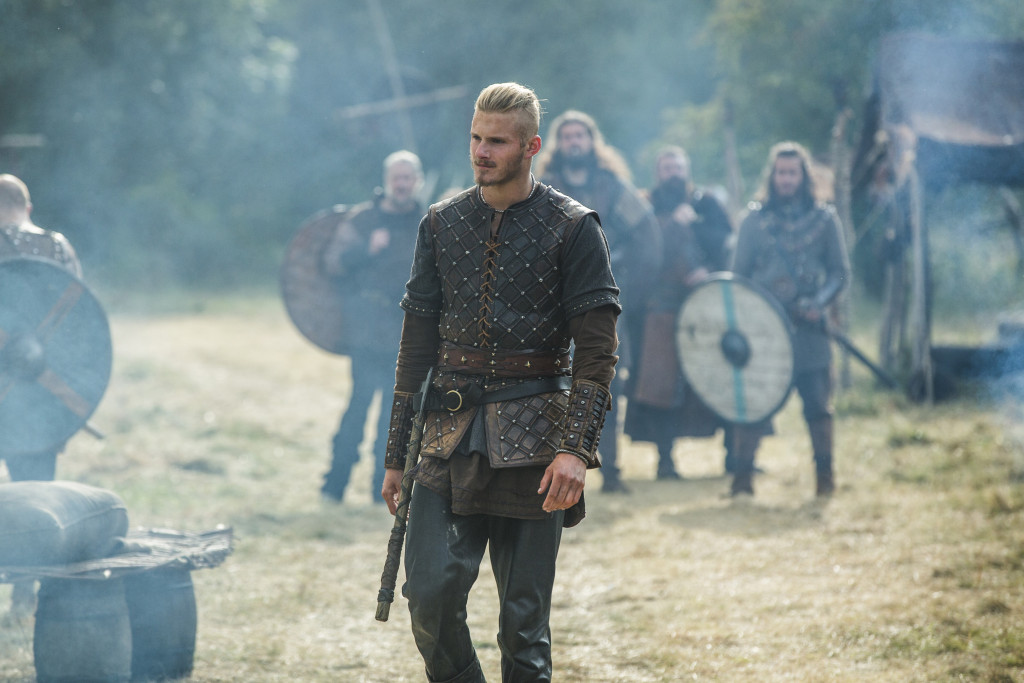“To the Gates!” began with a clear and sunny day. The time for the attack on Paris had arrived and the Vikings were getting ready to go. Floki (Gustaf Skarsgård) was overseeing the preparation of his tower/ladders, Ragnar (Travis Fimmel, crucifix in hand) looked on as his soldiers gathered their weapons and boarded the ships. Rollo (Clive Standen) pumped up his group with chants and then sailed off.