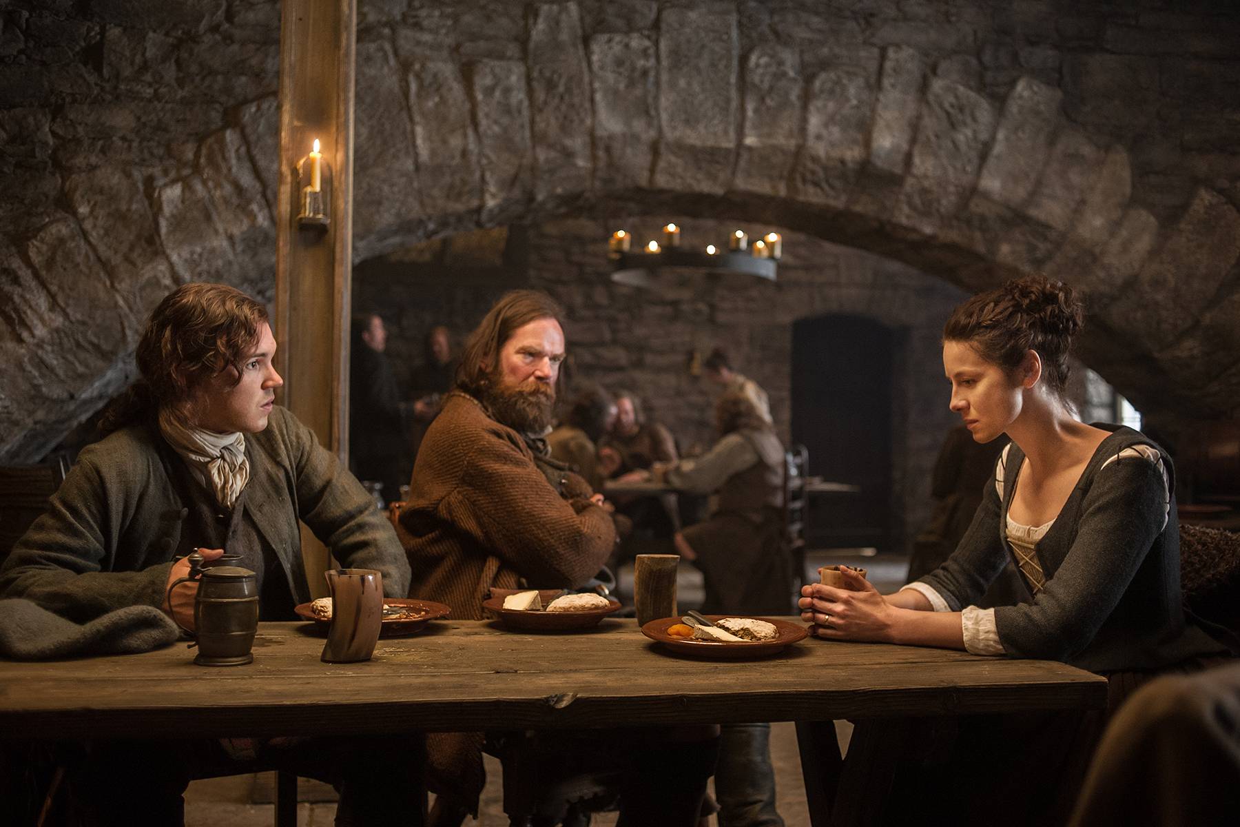If you take a look at the photo stills below we also get glimpses of Claire and the Highlanders trying to decide the best approach, as well as Jamie with other prisoners and Black Jack Randall (Tobias Menzies) in Wentworth.