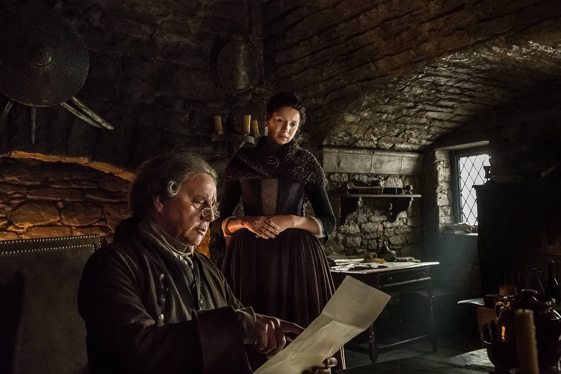Watch this clip from the upcoming show where Claire meets with Sir Gordon, who refuses to allow Jamie to write a letter. Instead he gives her Jamie’s personal effects: