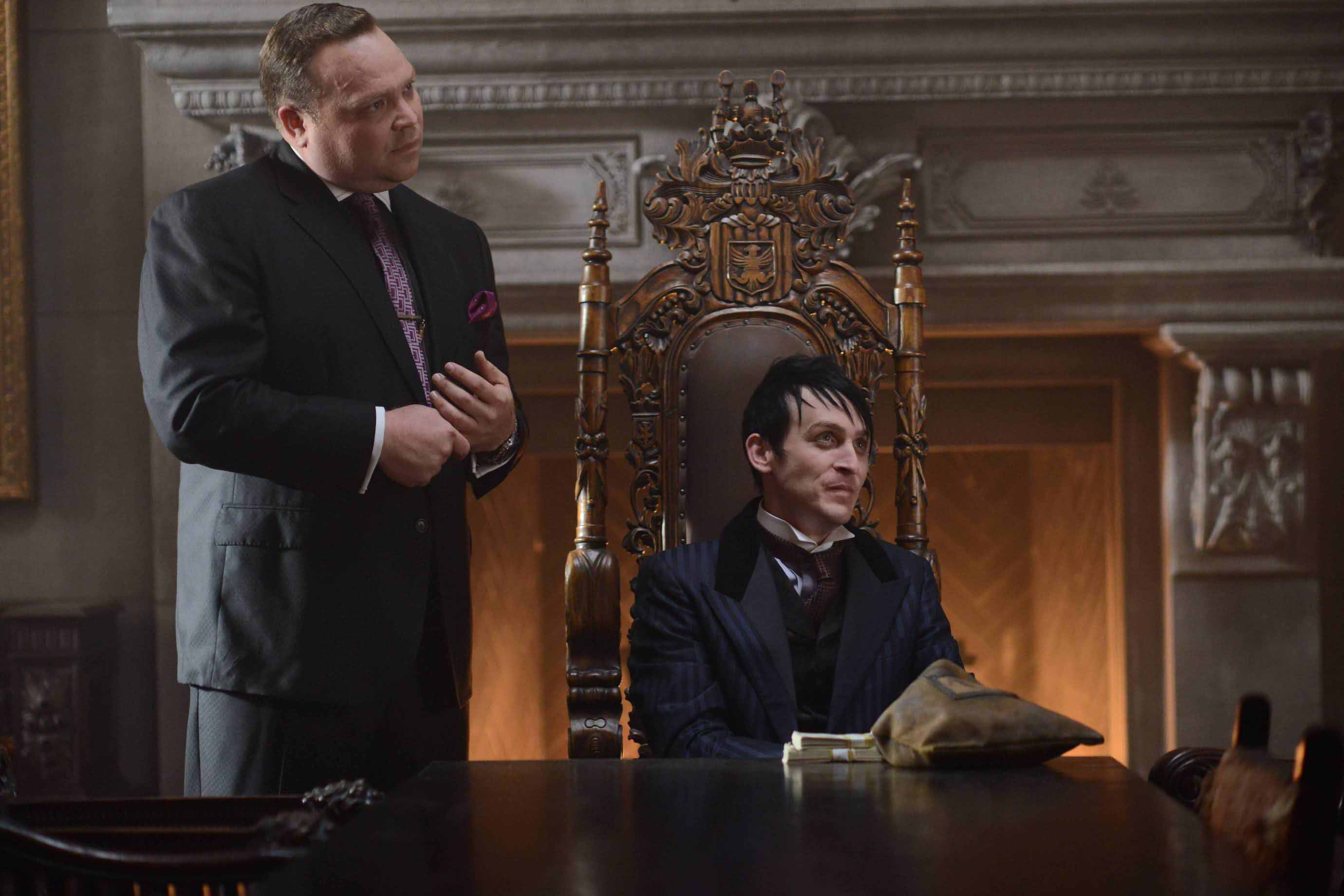 GOTHAM: (L-R) Butch Gilzean (Drew Powell) and Penguin (Robin Lord Taylor) in the “Damned if you Do,… ” Season Two premiere of GOTHAM airing Monday, Sept. 21 (8:00-9:00 PM ET/PT) on FOX. ©2015 Fox Broadcasting Co. Cr: Nicole Rivelli/FOX