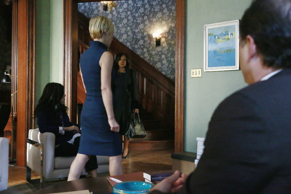 Annalise went to go see Nate at home to encourage him to take the job from the police sergeant and to say she missed him. Nate didn’t say he wouldn’t be with Annalise, but he needed more time. After she left, we saw that Wes was at Nate’s place and they agreed to a plan (we weren’t quite sure of the details).