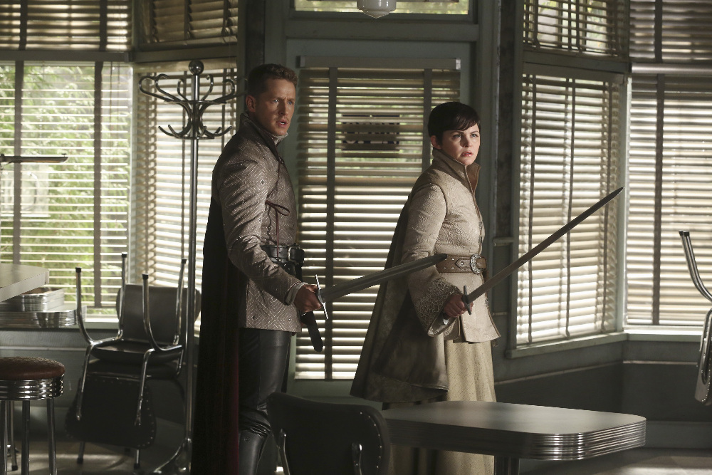 WHEN SHE LEARNS KING ARTHUR MAY BE HIDING HIS TRUE INTENTIONS, MARY MARGARET MUST CONVINCE DAVID AND THE HEROES OF HER SUSPICION BEFORE THEY JEOPARDIZE EMMA’S SAFETY—After receiving a cryptic warning from Lancelot about Arthur’s intentions, Mary Margaret realizes Arthur may be the heroes’ biggest threat, but when she is unable to convince David of the danger, she takes matters into her own hands. Meanwhile, Hook’s unwavering love for Emma provides a glimmer of hope in her struggle against the unrelenting voice of Rumplestiltskin. In a Camelot flashback, Guinevere senses that Arthur is losing his way, consumed by his obsession with making Excalibur whole, so she sets out with Lancelot on her own quest into the heart of darkness. In Storybrooke, Dark Emma unleashes a secret weapon in the next phase of her plan to find the brave soul she needs to draw Excalibur from the stone. (via ABC)