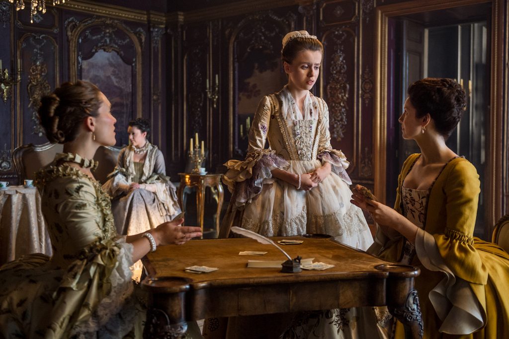 Also, watch a new BTS featurette where Ron Moore, Sam Heughan, and Caitriona Balfe, talk about Jamie and Claire’s Parisian friends and (fr)enemies.