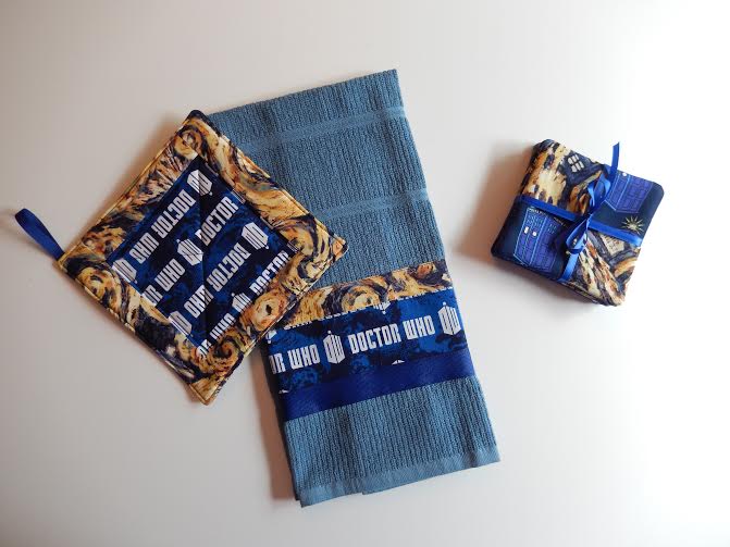 SATURDAY SHOUT-OUT: Glorious Zanymouse Creations (DOCTOR WHO dish towel and pot holder: Photo Credit Zanymouse Creations)