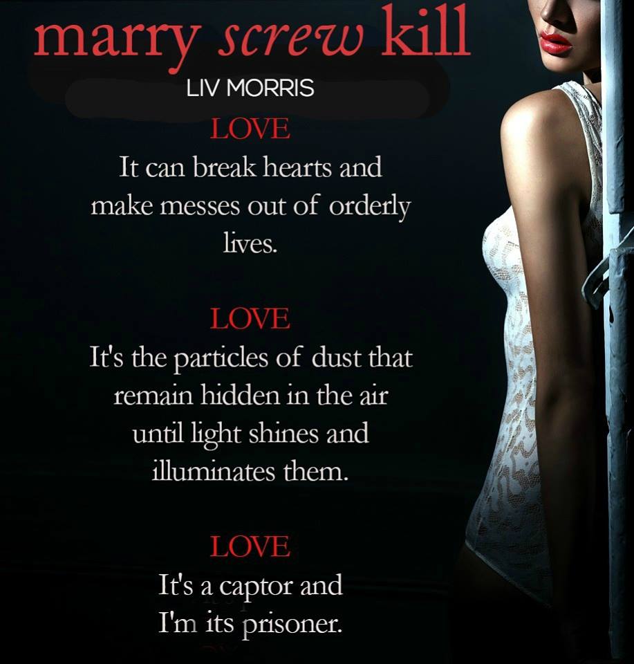 USA Today bestselling author Liv Morris has a new, standalone erotic romance that you won’t want to miss! I’ve loved Liv for years now. I can always count on her for a compelling story laced with some dark drama, but guaranteed to swoon my heart and curl my toes. And judging from the cover and summary, Marry, Screw, Kill is a novel that will achieve all these things!