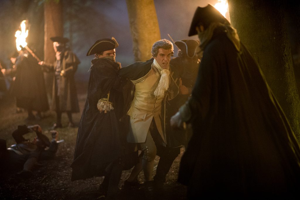 At the same time, Jamie and Murtagh plotted to sabotage the transport. They hired a bunch of highwaymen who would dress as courtiers (posing as Les Disciples, the gang of aristocrats) and steal the wine.