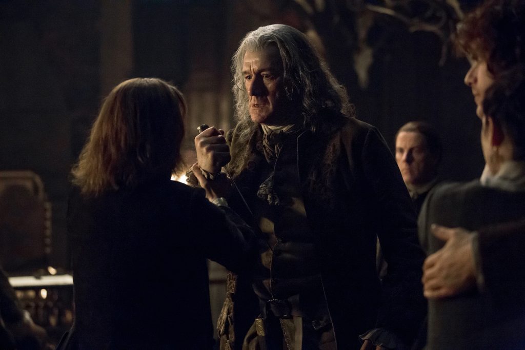 Claire and Jamie call upon Jamie’s grandsire, Lord Lovat, in an attempt to elicit support for the Jacobite cause. However, a visiting Colum MacKenzie has other plans, and Lord Lovat’s manipulative machinations ensure that no matter what, his own interests will be served. (via STARZ)