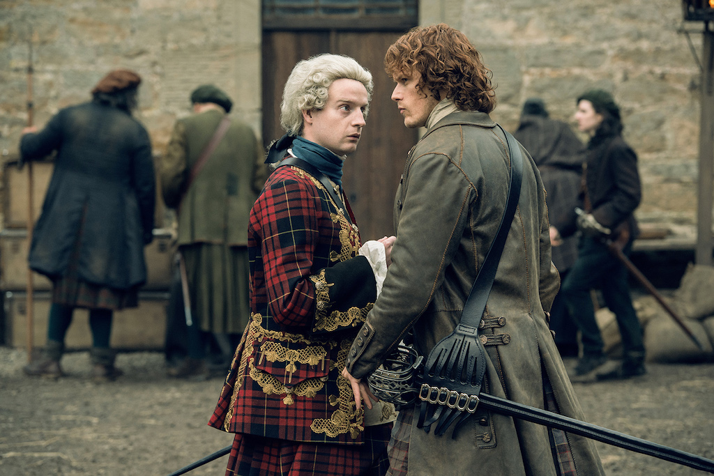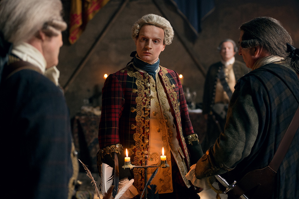 In this sneak peek (via an Esquire exclusive), Jamie and Dougal are at Prince Charles’ camp, across from the British encampment. They discuss strategies for deciphering the distance between them and the redcoats: