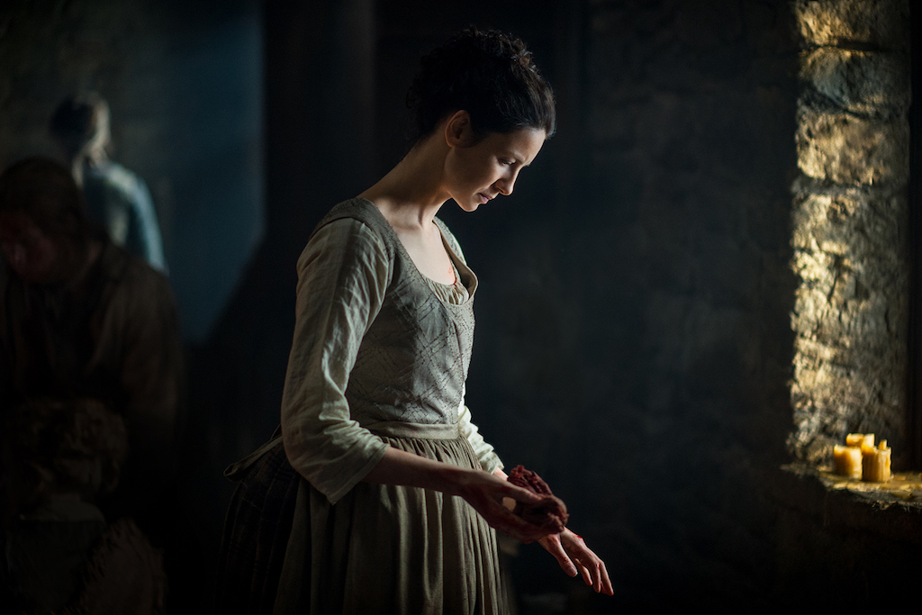 Second, though it pained me, I thought it was so important to see Claire dealing with PTSD. I mean, can you imagine? Claire was a nurse in World War II, worked alongside American soldiers, witnessed atrocities, and faced just as much danger. Then to have her travel back in time to go through a similar process in the Jacobite war… it had to be bewildering. I really have to hand it to production as well, because Claire’s flashbacks were so vivid and well-placed. I 100% understood her reticence to go to war again; she’d just gotten out of another one!