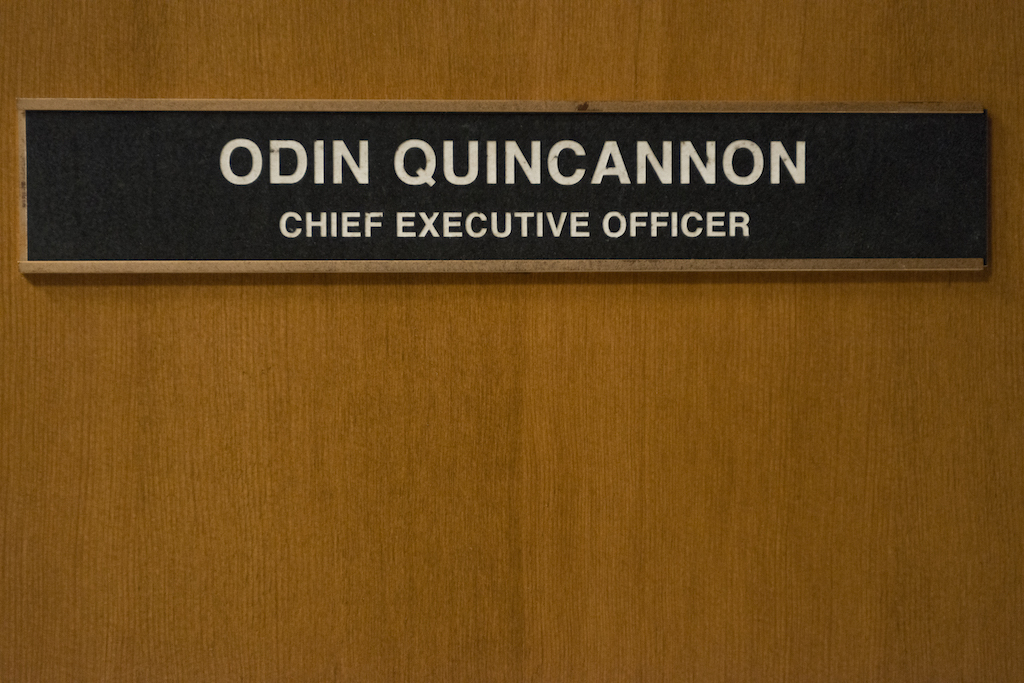 Quincannon stares out his office window and as he celebrates the victory he thinks is coming.
