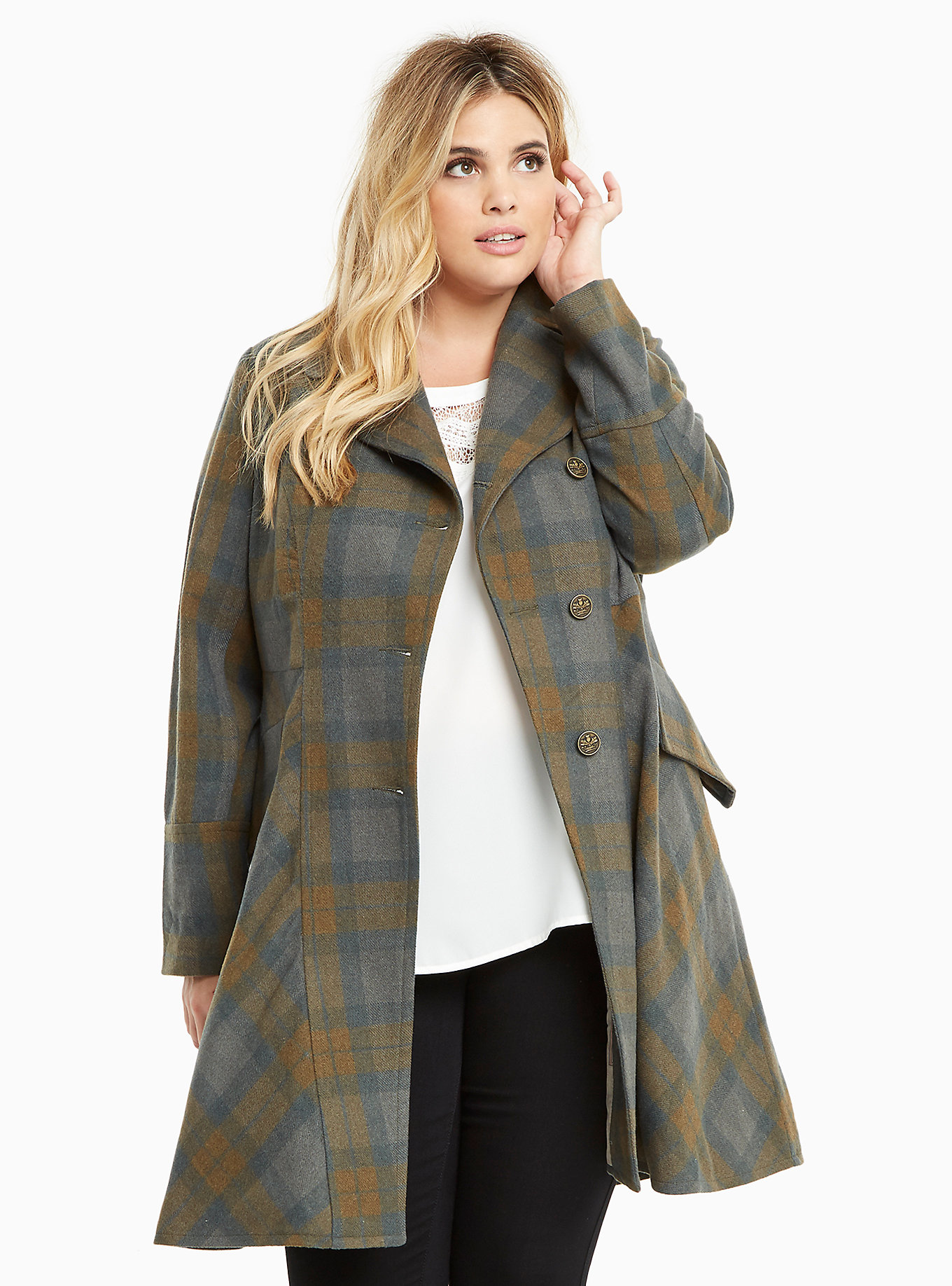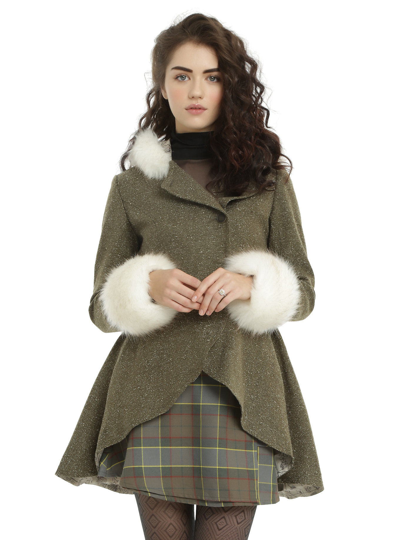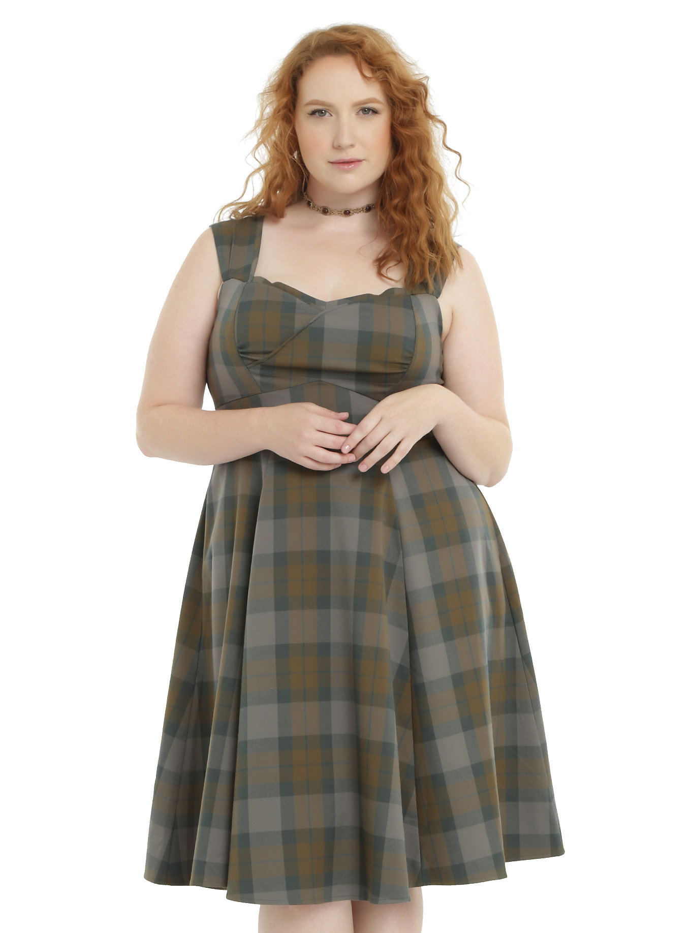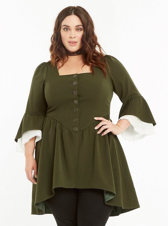 Both Hot Topic and Torrid are offering a fashion collection celebrating the adventures of Claire Randall. This includes a tartan dress, riding coat, peplum jacket, a reversible cape in Fraser tartan), plus more! The bonus is that the pieces of the collection are available in plus sizes too, so all Outlander fans can