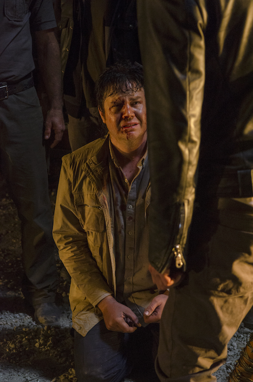 Right then, you know Daryl will be taken away with the Saviors. Negan stands up and decides to make another example because he won’t take anyone stepping out of line. As he walks back toward the group, Glenn is directly to his side, and you know what’s happening next, but it’s just as jarring.