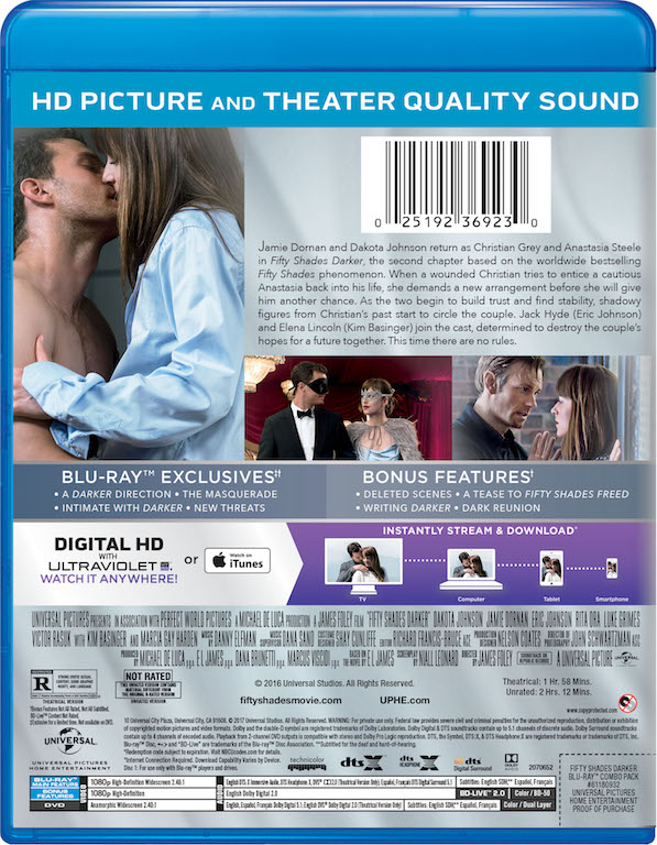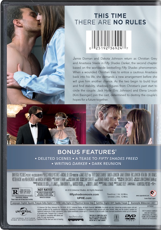 The UNRATED (yes, UNRATED!!!) Fifty Shades Darker will be available on Digital HD on April 25, and then two weeks later (May 9) on Blu-ray, DVD, and On Demand.