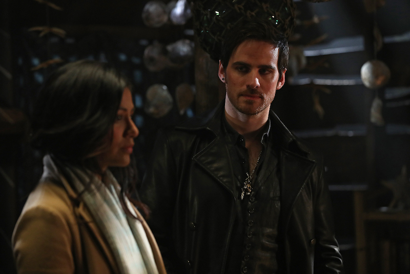 REGINA AND SNOW TEND TO EMMA’S BROKEN HEART WHILE HOOK SCRAMBLES TO FIND HIS WAY BACK TO STORYBROOKE, AND JASMINE TEAMS UP WITH ARIEL AS THE SEARCH FOR AGRABAH CONTINUES—When Hook finds himself trapped in another realm along with the Nautilus and her crew, he races to return to Emma before Gideon can execute the rest of his plan. In Storybrooke, Regina and Snow take Emma out to get her mind off Hook’s disappearance. And in a flashback to Agrabah, Jasmine befriends Ariel, and together they set out to locate Prince Eric as the threat from Jafar intensifies. (via ABC)