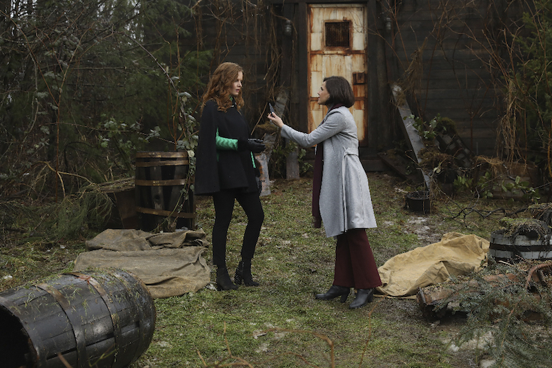ZELENA AND REGINA’S RELATIONSHIP IS TESTED BY THE BLACK FAIRY, WHILE CHARMING AND SNOW DISAGREE OVER EMMA’S WEDDING PLANS—In flashback, Zelena befriends a young woodcutter who has been cursed and turns to her for help finding a new heart. Zelena is forced to choose between keeping her powers and her friendship with him. Meanwhile, in Storybrooke, Zelena decides to take on the Black Fairy and put a stop to her, once and for all, against Regina’s wishes, and the Charmings disagree over Emma and Hook’s wedding plans. (via ABC)