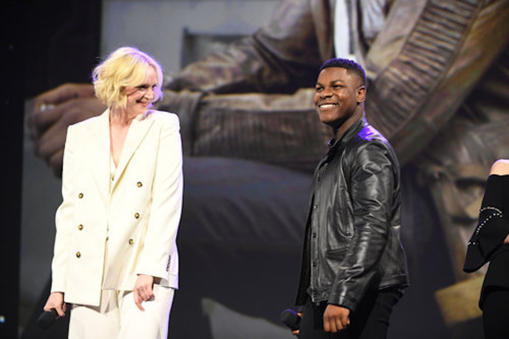 In addition to some beautiful moments with Fisher and other members of the cast, including Oscar Isaac (Poe Dameron) and Mark Hamill (Luke Skywalker), we get shots of Daisy Ridley’s Rey interacting with Luke Skywalker. John Boyega (Finn) teasing the director for not knowing how to make Chewbacca noises, and Gwendoline Christie debuting Captain Phasma’s shiny new costume.