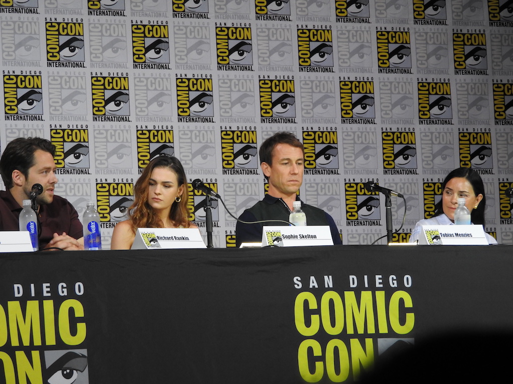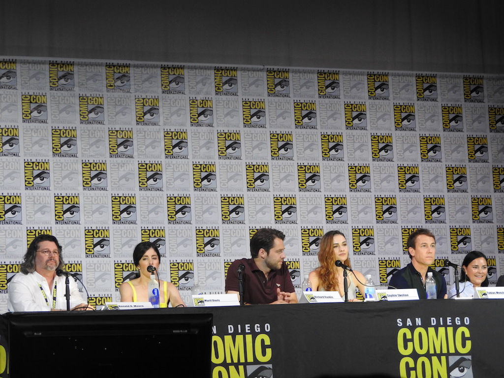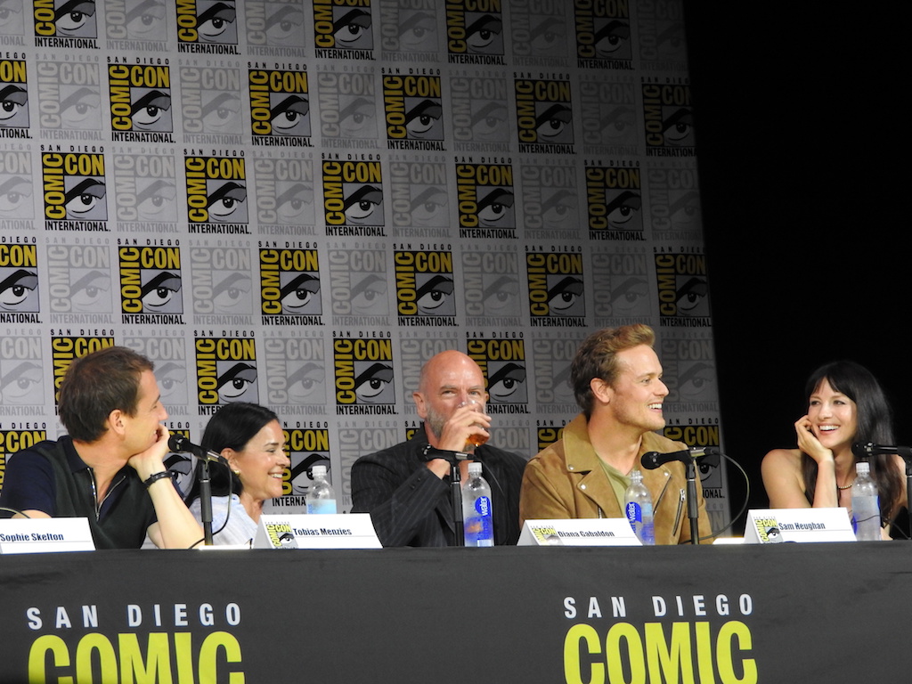 Ron Moore (executive producer), Maril Davis (executive producer), Diana Gabaldon (author), Caitriona Balfe (Claire Randall Fraser), Sam Heughan (Jamie Fraser), Tobias Menzies (Black Jack Randall/Frank Randall), Sophie Skelton (Brianna Randall) and Richard Rankin (Roger Wakefield) all attended the panel.