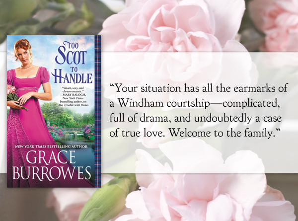 Grace Burrowes is back with Too Scot to Handle! This is the second novel in her Windham Brides series! Take a look here and enter the giveaway!