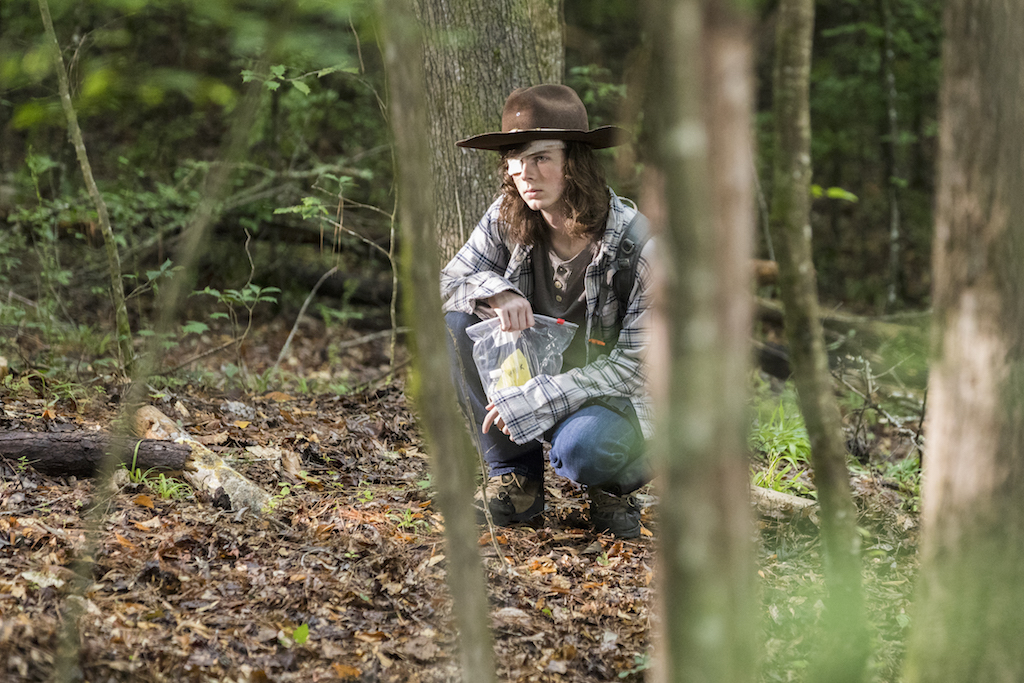 With “The King, the Widow, and Rick”, we’re getting a look at the inside of Hilltop and their Savior captives (that’ll end well), it appears we’ll be seeing the Kingdom again and Ezekiel, and inside the ASZ (or outside based on the clips and stills) we have Carl abandoning his post and Michonne and Rosita getting revenge their own way?