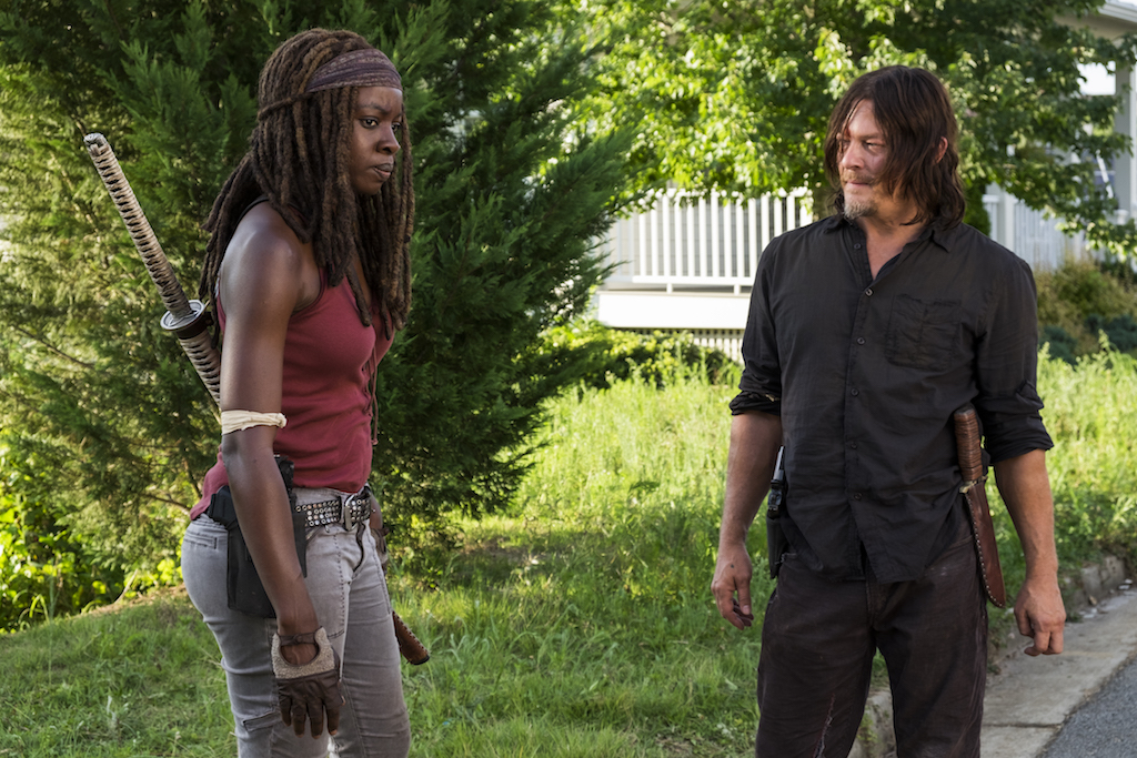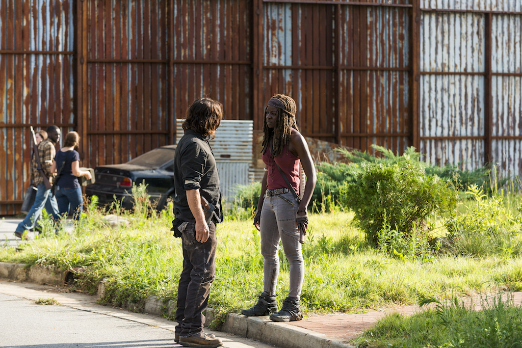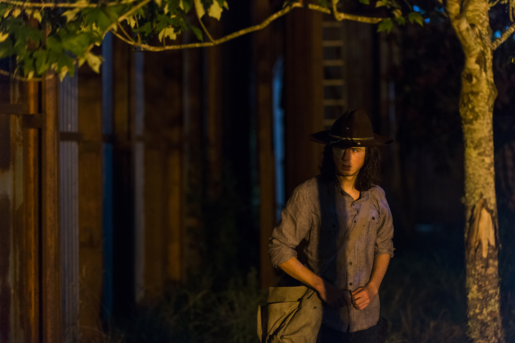 Carl, who has been left to defend the safe zone, is convinced if they last the night, they’ll be okay after Negan shows up. Michonne is there with him and so is Daryl.