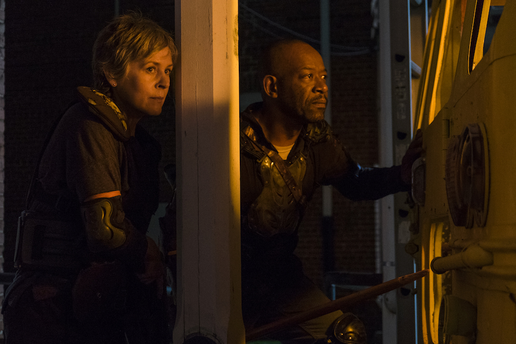 Take a look at the sneak peak and other stills below to get an idea what’s happening to the people of the Kingdom, too! Will Carol and Morgan be able to save Ezekiel without sacrificing themselves? With Lennie James moving to FTWD will they kill him off on TWD or is all this talk of time jumps on FTWD and indicator that they’re speeding up the apocalypse?